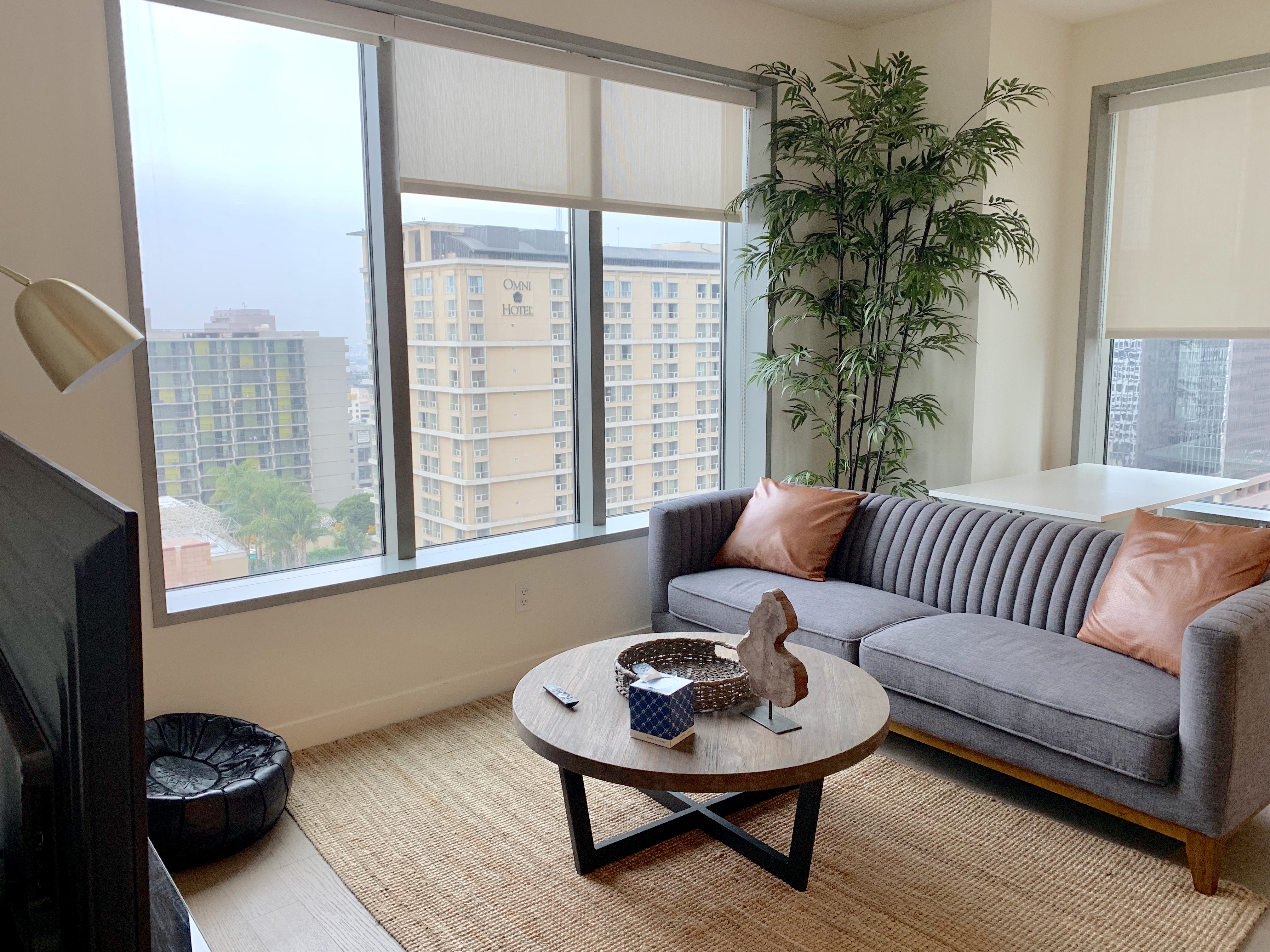 On the design front, everything was high end, or at least good quality. The decor was minimalistic, in a good way. It made the unit feel spacious and inviting, complementing the great view of downtown LA that spread across the large windows.