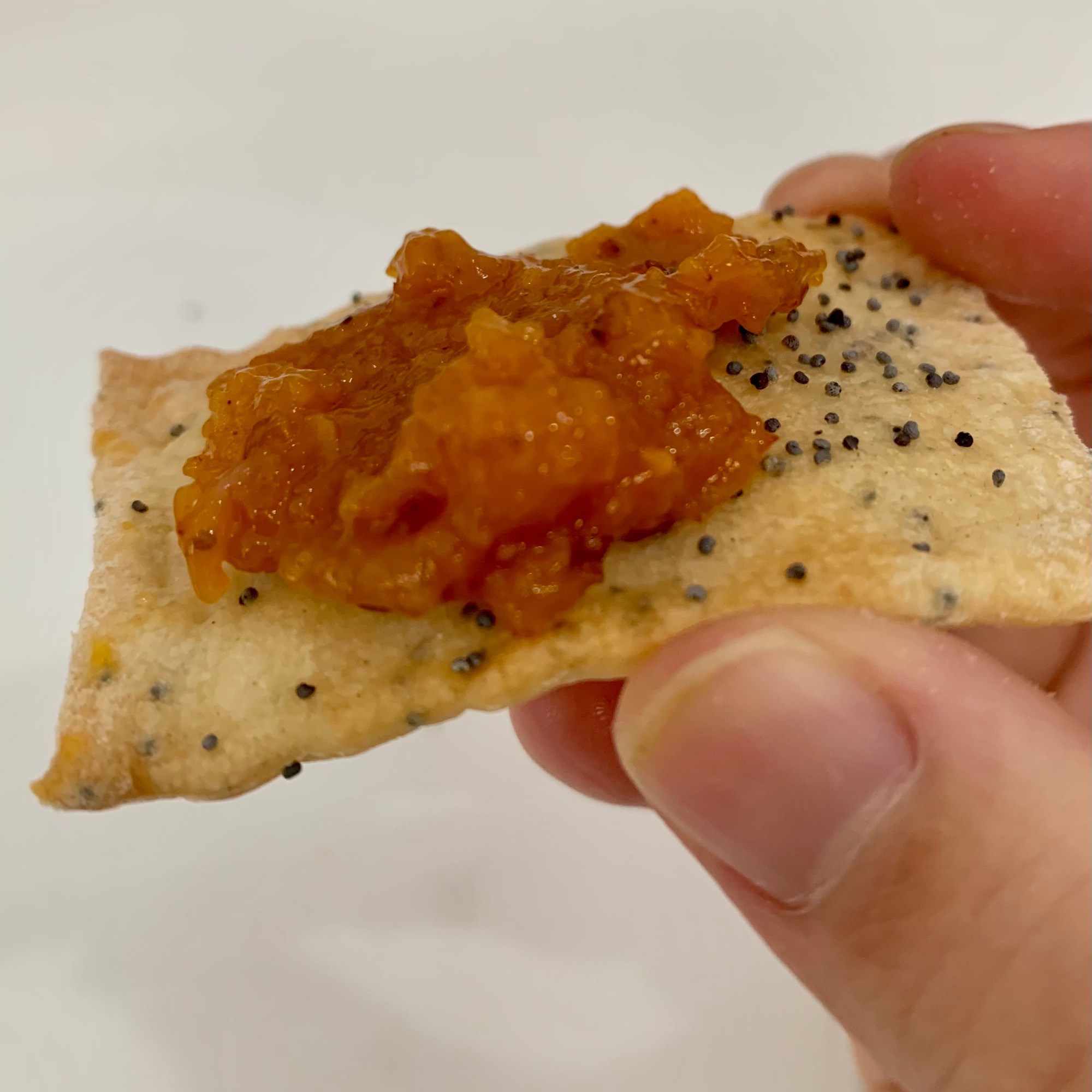 Fresh strawberry tree jam on homemade crackers and English muffins