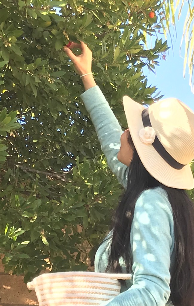 The tree grows to the size of a tall bush and the fruit — a prickly reddish orange ball the size of, well, a strawberry — dangles from the branches.