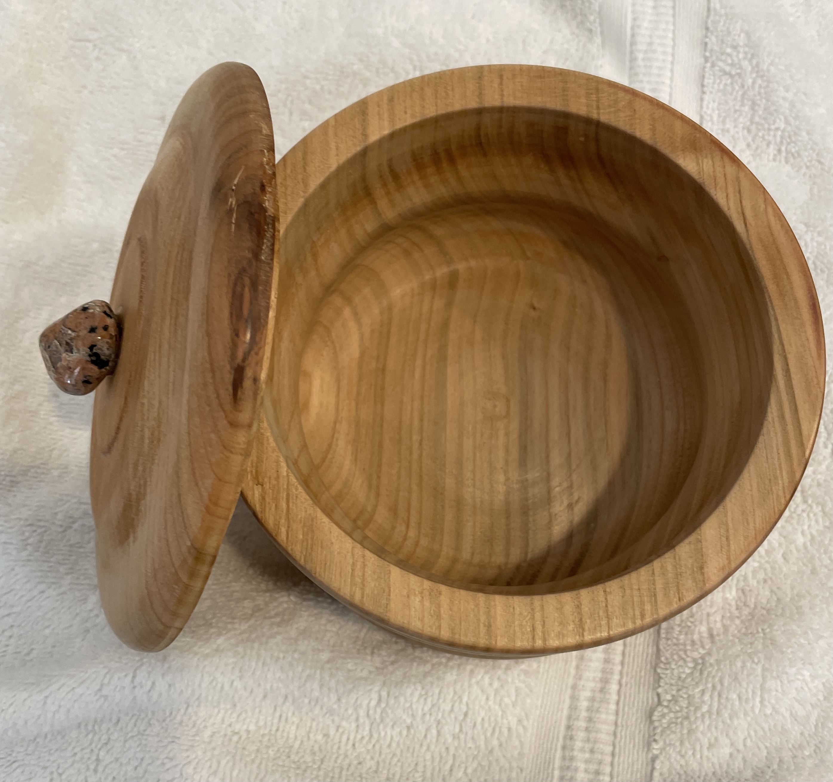 Here is a bowl he gave to Sherry and me last year for Christmas. This is also made of birch. The granite stone top is a nice touch.