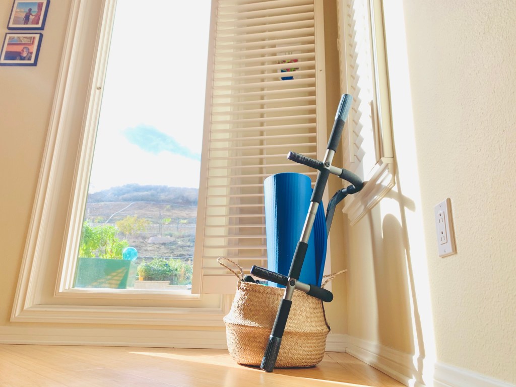 At the beginning of the pandemic, we were cooped up in our downtown LA apartment with no balcony and no way to get out without using high-traffic hallways, stairways or elevators. That’s when George decided to make us a home gym that was easy to set up, use, and put away.